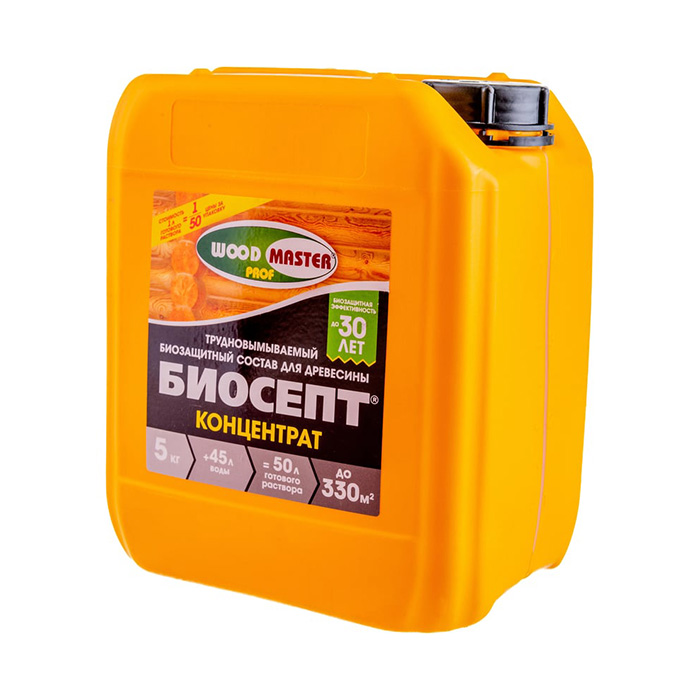 Антисептик «Биосепт-Концентрат» представляет собой трудновымываемый биозащитный состав для обработки древесины и минеральных поверхностей. Предназначен для внутренних работ и поверхностей под навесом, образует прозрачное бесцветное покрытие, не изменяющее внешний вид материалов.