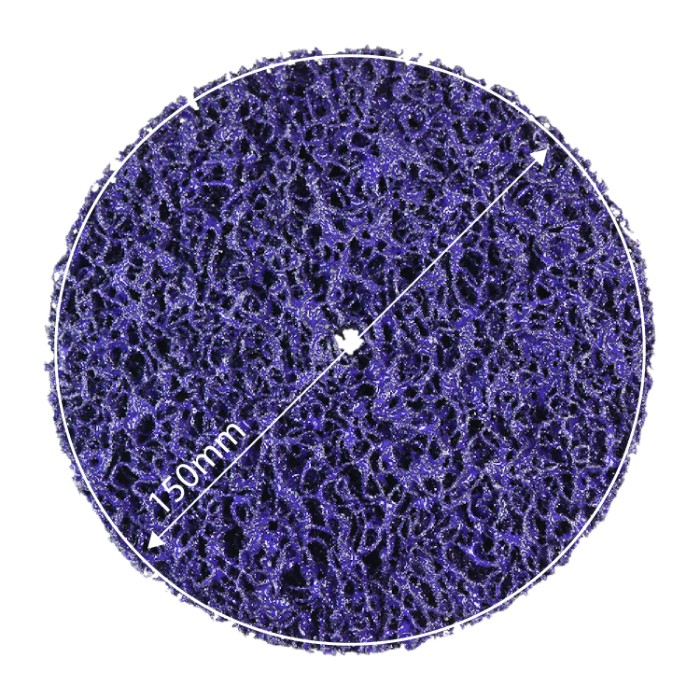 Волокнистый зачистной диск Betacord (без держателя) диаметром 150мм. содержит карбид кремния в качестве абразивного материала. Карбид кремния интегрирован в объемный материал, образуемый волокнами нейлона, скрепленными специальной смолой. В процессе производства карбид кремния смешивается с нейлоновыми волокнами, полиэфирной смолой и запекается, образуя объёмную и жёсткую конструкцию материала.