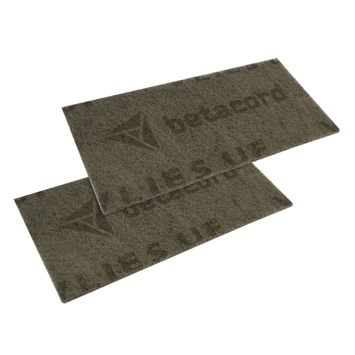 Нетканый абразивный матирующий материал Betacord Vlies Zirkon на основе полиамидных волокон, скрепленных синтетической смолой. В качестве абразива применяется оксид алюминия.