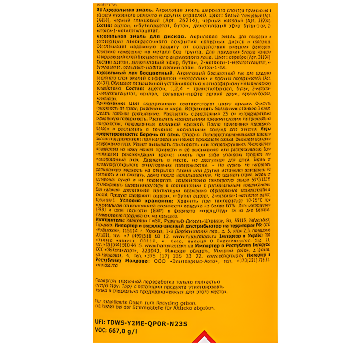 Тип упаковки: аэрозольный баллон
