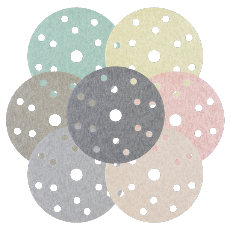 Уникальные шлифовальные круги (152 мм, 15 отверстий) на сверхтонкой нано-пленочной основе. Предназначен для матирования поверхности, обработки грунта и лака, особенно эффективен для обработки твердых лаков. Абразив работает без применения воды, обеспечивает идеально ровную однородную риску, демонстрирует высокую скорость работы. Рекомендован к использованию с мягкими промежуточными подложками HANKO. Гибкая основа гарантирует максимальное удобство при шлифовании неровных поверхностей и сложных профилей. Диски HANKO HAN FLEX крепятся к подошве с помощью липучки Velcro. Цветовые обозначения зернистости: бирюзовый (Р600), лимонный (Р800), розовый (Р1000), персиковый (Р1200), бежевый (Р1500), асфальтовый (Р2000), серый (Р3000).