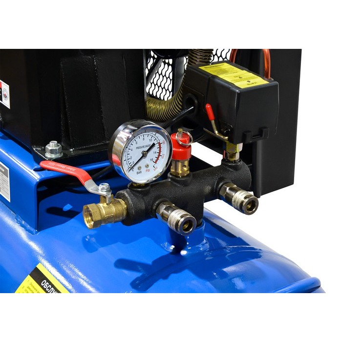 - Компрессорная головка с 2 цилиндрами, установленная на 150-л ресивере;