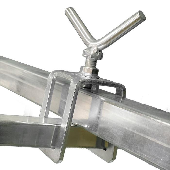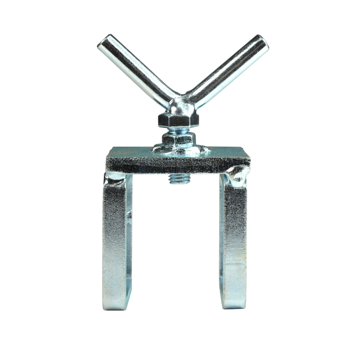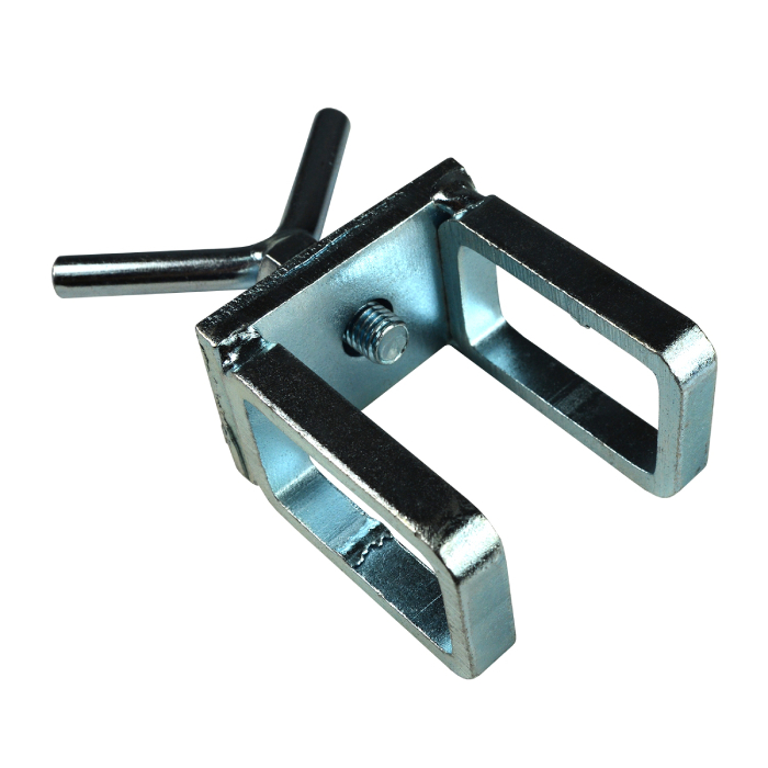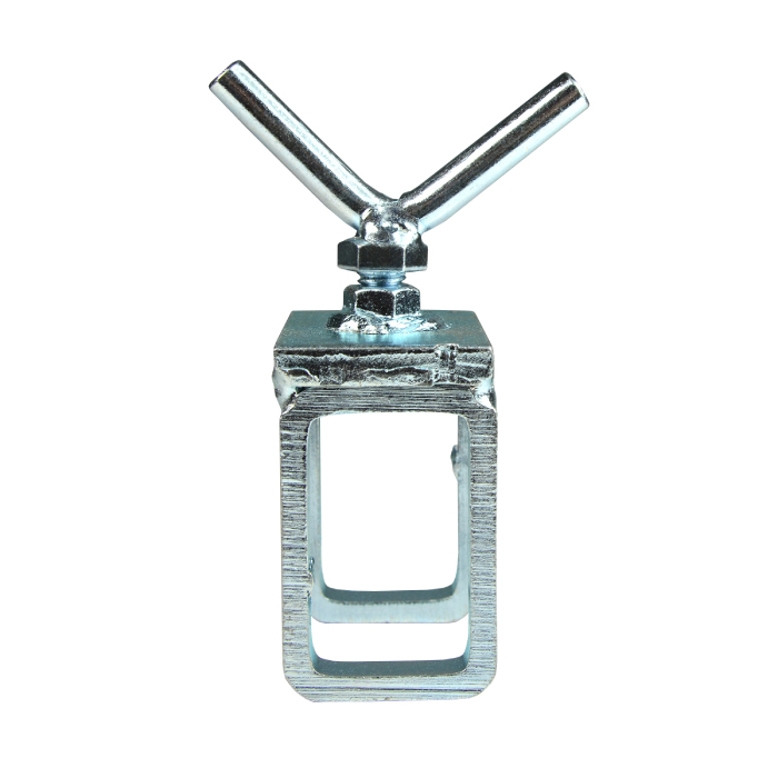 Зажим-фиксатор в виде П-образной скобы из оцинкованной стали для поворотного окрасочного стола IQ модели 5501013 ("вертолет"). Используется как запасная часть или для крепления на столе дополнительных держателей. Высота проёма - 50мм.