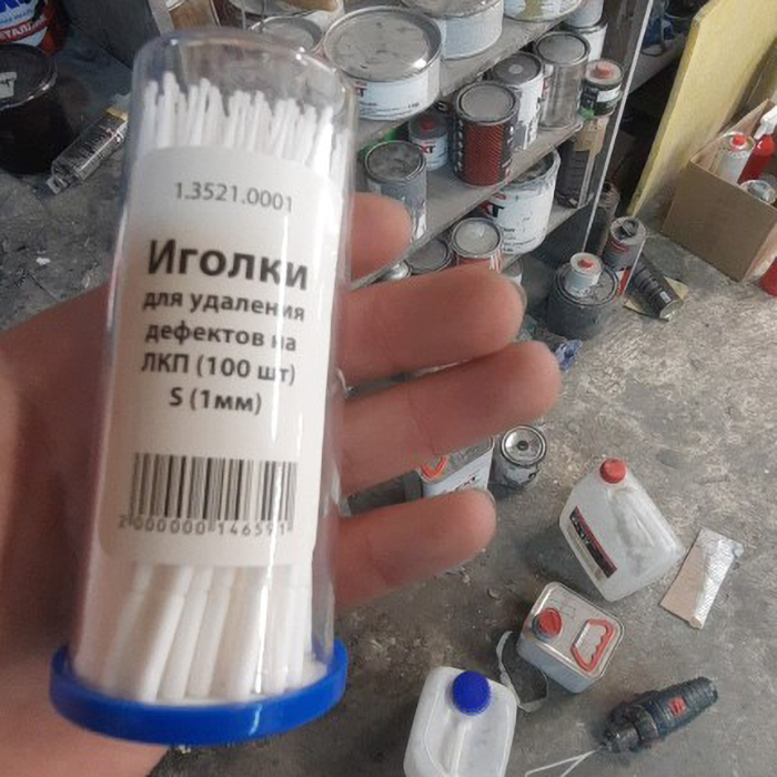 Аппликатор для ретуширования сколов ИНТЕРКОЛОР M в виде тонкой пластмассовой палочки с микротампоном из искусственного волокна диаметром 1,5мм. Аппликатор для ретуширования сколов ИНТЕРКОЛОР M является идеальным средством для ретуширования (подкраски) мелких сколов на лакокрасочном покрытии автомобилей или во всех других случаях, когда необходимо замаскировать дефект на любом лакокрасочном покрытии.