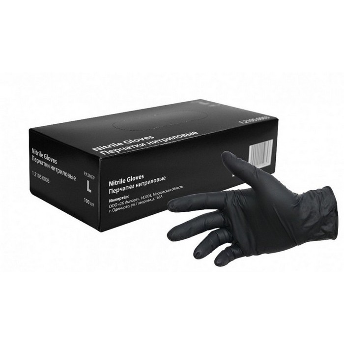 Интерколор Перчатки нитриловые черные, 60 мкм, размер L (упаковка -100шт.)