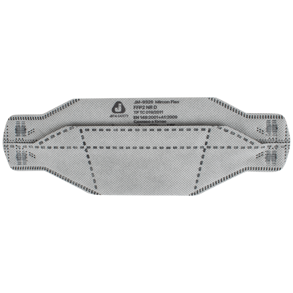 JETA SAFETY JM-9326 Micron Flex — одноразовый противоаэрозольный трехпанельный респиратор с клапаном и дополнительным угольным слоем. Защищает органы дыхания от сварочных паров, микрочастиц стекла, бетона, металлической стружки древесной пыли, штукатурки, строительной пыли в высокой концентрации, стеклянного и минерального волокна, пыльцы, шерсти, бытовой пыли, масляного тумана, жидких аэрозолей и угольной пыли, неприятных запахов. Форма респиратора позволяет носить его в карманах рабочей спецовки. Используется в таких сферах, как сварка, промышленный клининг, строительство и сельское хозяйство, добыча полезных ископаемых, а также при работе с изоляционными и высокоаллергенными материалами, бытовой химией в малых концентрациях, на операциях фрезерования, шлифования, резки и сверлении материалов. FFP2 NR D (ГОСТ Р 12.4.191-99 ССБТ).
