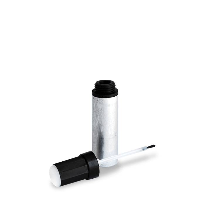 Герметичная алюминиевая туба с кисточкой – удобная упаковка для лакокрасочной продукции. Оптимальное решение для малого и среднего бизнеса: производителей лаков, красок, грунтовок; магазинов и специализированных точек по подбору авто эмалей. Тонкая заострённая кисточка обеспечивает аккуратное нанесение, а съёмная пластиковая заглушка для нанесения образца цвета – удобный ориентир для покупателей.
