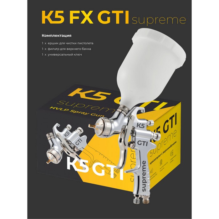 К5 GTI Supreme 1,3 Краскопульт c верхним пластиковым бачком 600мл., диаметр сопла 1,3мм.
