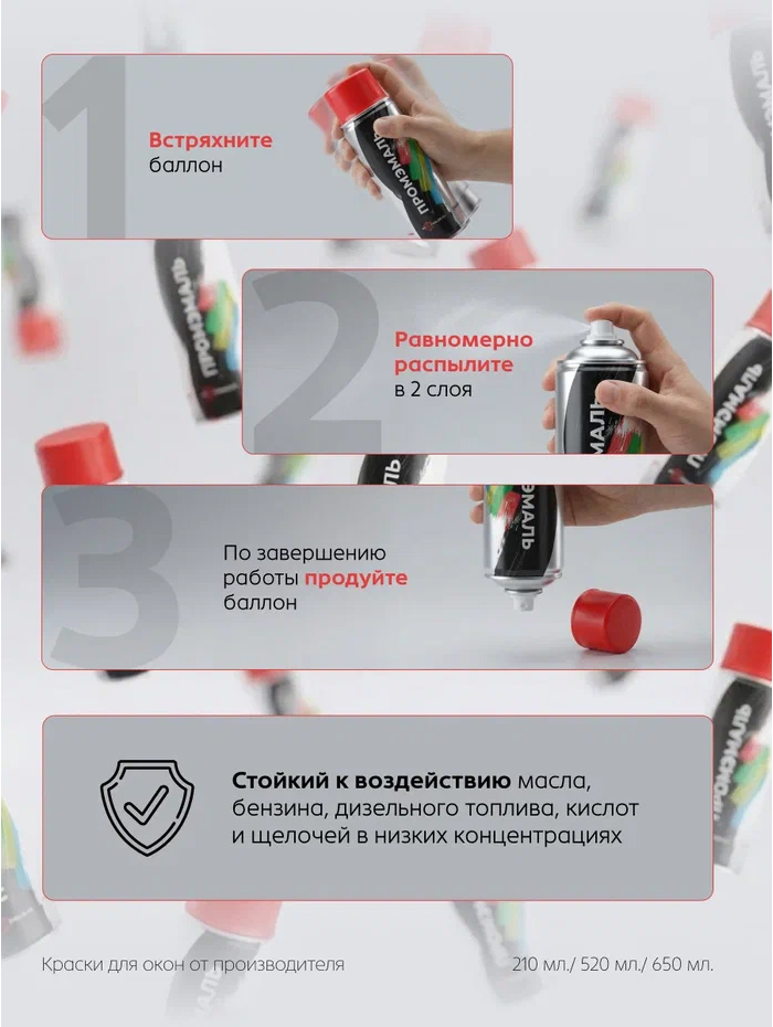 Грунт-эмаль ПУ в аэрозольных баллонах объемом 210 мл./ 520 мл./ 650 мл.