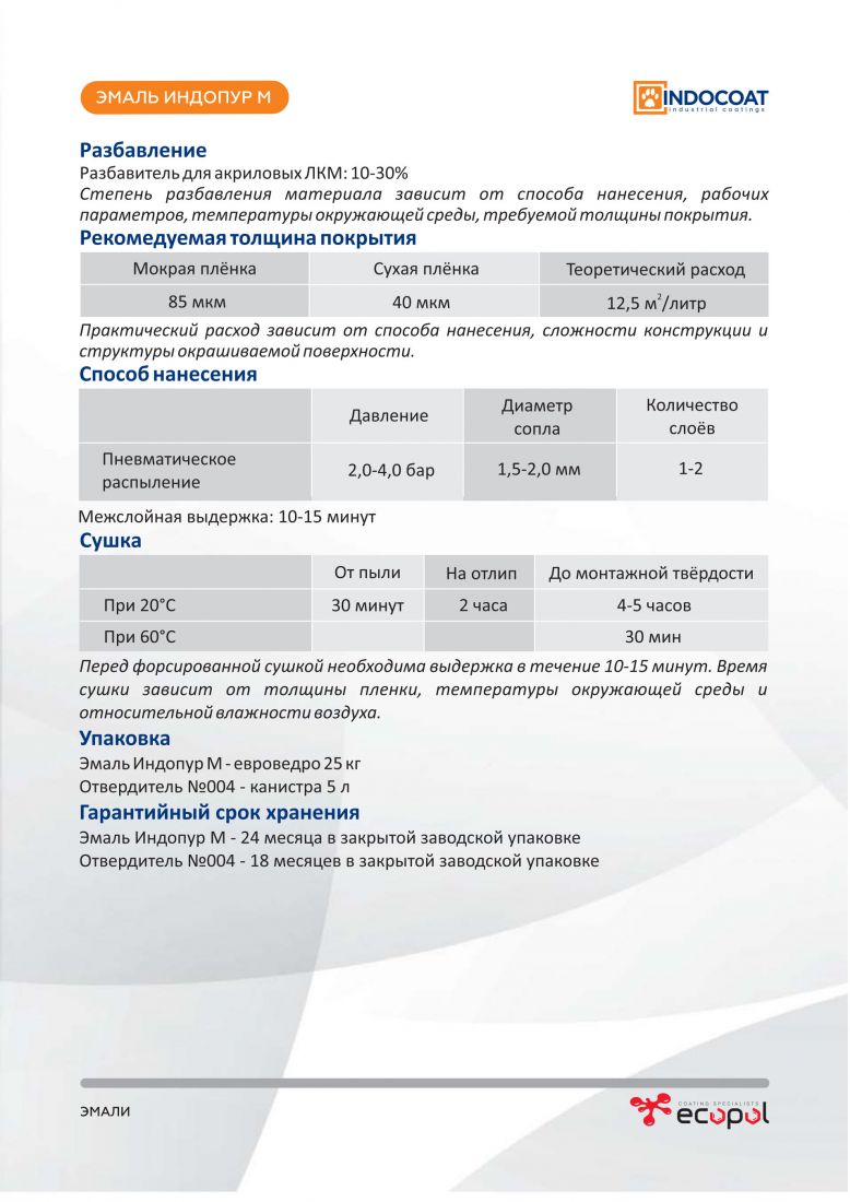 Тип краски: Индопур М