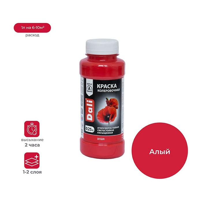 Колеровочная краска предназначена для колеровки водно-дисперсионных строительных и декоративных материалов, а также для художественных и оформительских работ — росписи, декорирования и других декоративных целей. Может использоваться как самостоятельное покрытие или как добавка для тонирования различных лакокрасочных материалов.