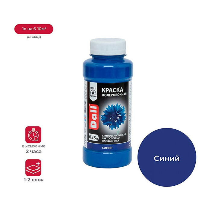 Колеровочная краска предназначена для колеровки водно-дисперсионных строительных и декоративных материалов, а также для художественных и оформительских работ — росписи, декорирования и других декоративных целей. Может использоваться как самостоятельное покрытие или как добавка для тонирования различных лакокрасочных материалов.