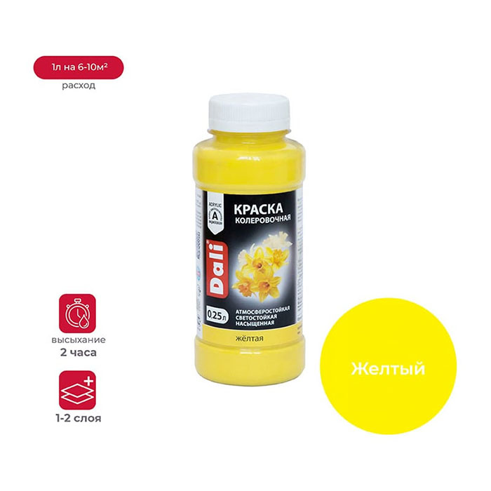Колеровочная краска предназначена для колеровки водно-дисперсионных строительных и декоративных материалов, а также для художественных и оформительских работ — росписи, декорирования и других декоративных целей. Может использоваться как самостоятельное покрытие или как добавка для тонирования различных лакокрасочных материалов.