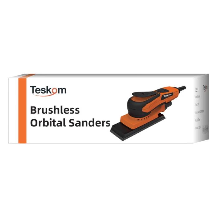 Teskom Орбитальная шлифовальная бесщеточная машинка подош.197x70мм., эксцентрик 3.0мм., 350W предназначена для кузовного ремонта автомобилей, шлифовки композитных материалов, для деревообработки, мебельного и прочего промышленного производства.