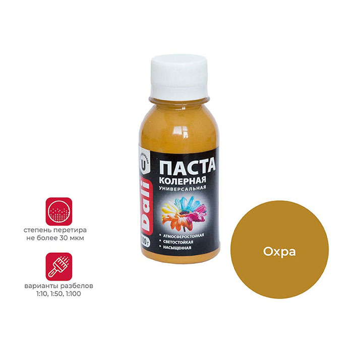Способ применения: Перед использованием пасту необходимо интенсивно встряхнуть. Для самостоятельного окрашивания - нанести на сухую, чистую поверхность в 2 слоя с промежуточной сушкой 1 час. Для колеровки - добавлять небольшими порциями в краску или другой материал, тщательно перемешивая до получения нужного оттенка. Рекомендуемые варианты разбелов: 1:10, 1:50, 1:100. Инструменты очищаются водой. Работы проводить при температуре от +10°C и влажности не более 80%.