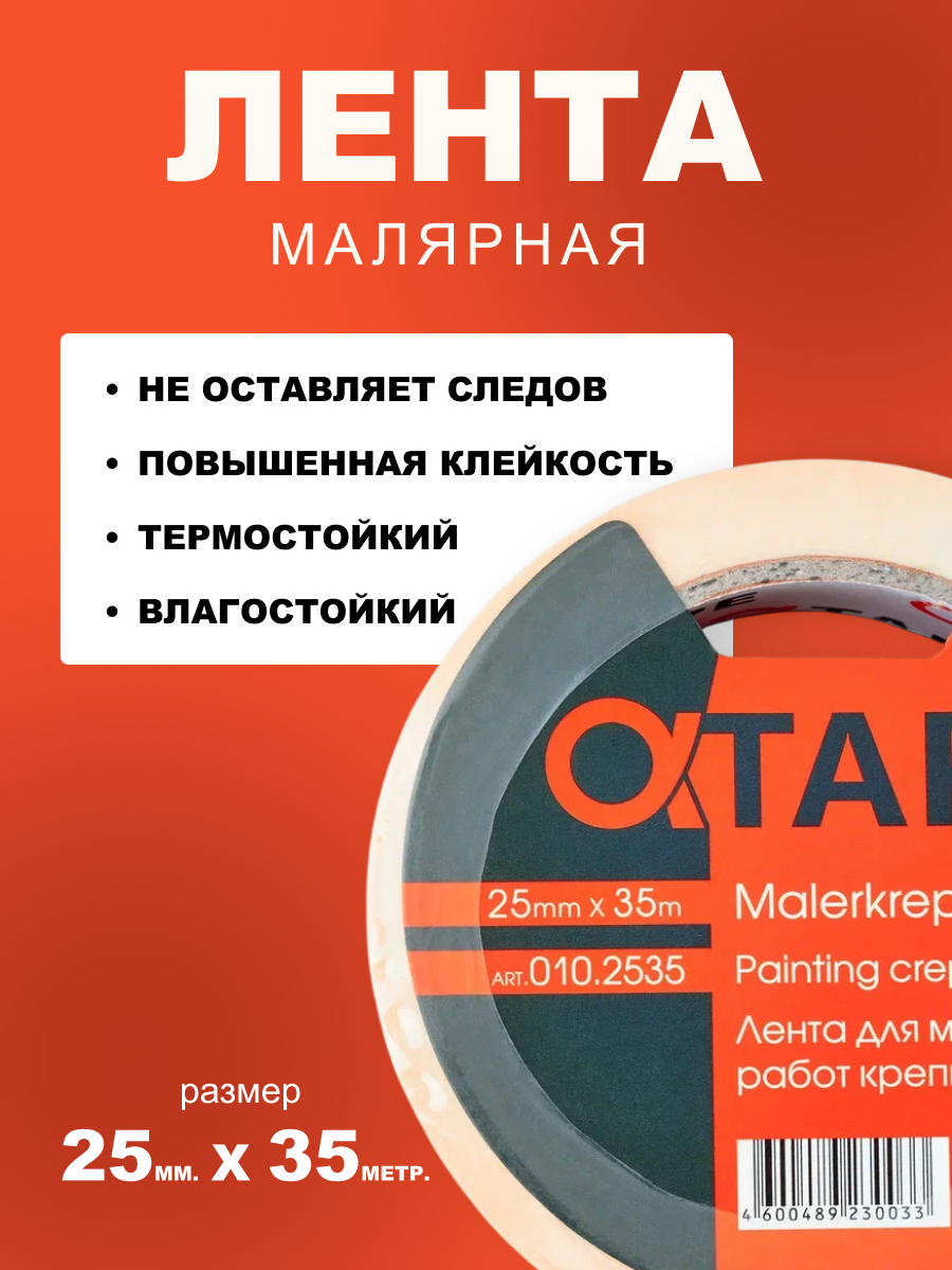 Лента, предназначенная для малярных и строительных работ. Скотч не оставляет следов, имеет повышенную клейкость, термостойкость и влагостойкость.