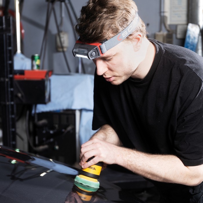 Scangrip I-MATCH 3 — новейший налобный фонарь, который обеспечивает превосходное освещение для выполнения любых работ по детейлингу и цветоподбору. Это перезаряжаемый фонарь, оснащенный новейшей технологией светодиодов COB, равномерно распределяет мощный световой поток и освещает все объекты в поле зрения. По сравнению с предыдущей моделью, новый I-MATCH 3 имеет функцию ALL DAYLIGHT, которая предлагает 5 различных цветовых температур в зависимости от типа выполняемой работы. Он также имеет функцию плавного диммера, позволяющую легко регулировать светоотдачу в диапазоне от 10% до 100%. Его яркость была увеличена со 160 люмен до 250 люмен.