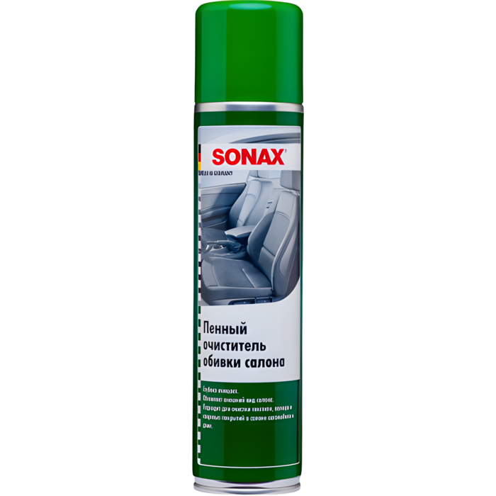 Уникальный по своему составу Пенный очиститель обивки салона от SONAX эффективно справляется даже с глубоко въевшимися застарелыми пятнами на мягкой обивке, чехлах, велюре и ковриках. Благодаря инновационной формуле препарат глубоко проникает в структуру ткани, расщепляет и удаляет масляные загрязнения, пыль, отложения табачных смол и другие виды пятен.