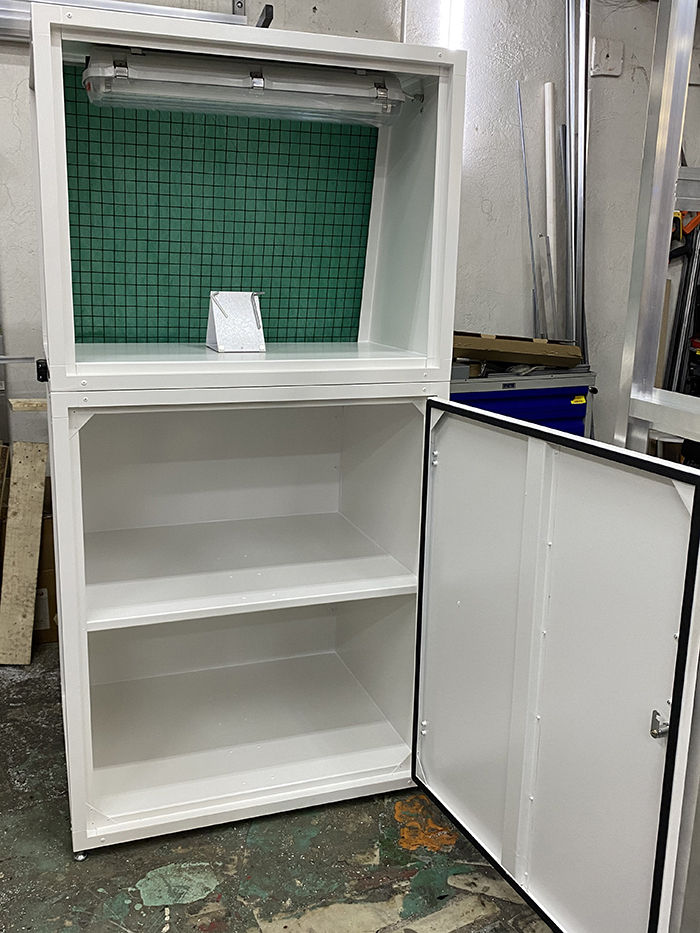 -Назначение: для размещения камеры тест-напыла и в качестве рабочего стола и стеллажа для размещения и хранения сопутствующих материалов.