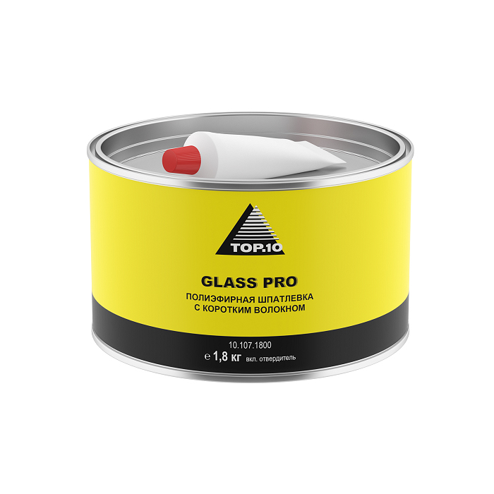 Полиэфирная наполняющая шпатлёвка средней вязкости TOP.10 GLASS PRO усилена коротким стекловолокном; идеальна для устранения небольших отверстий, участков сквозной коррозии, трещин, средних и крупных дефектов и неровностей на металлических деталях кузова автомобиля.