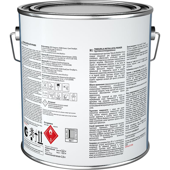 Антикоррозионная быстросохнущая грунтовка для чёрных и цветных металлов. Предназначена для грунтования стальных, оцинкованных и отшлифованных алюминиевых поверхностей при повышенных нагрузках, когда обычные алкидные материалы недостаточны по адгезии или скорости сушки. Подходит для меди, латуни и нержавеющей стали; допускается применение по сварным швам. Используется как грунт под алкидные (например, Tikkurila Metallista) и водоразбавляемые эмали для работ внутри и снаружи.