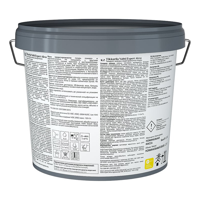 Высокоэффективная декоративно-защитная лазурь для вертикальных деревянных поверхностей. Предназначена для вагонки, клеёного бруса, строганых и пилёных дощатых фасадов, а также балок, перил и откосов, подвержённых атмосферной нагрузке. Существенно продлевает срок службы древесины и подчёркивает её структуру. Защищает от влаги, УФ-излучения, синевы и плесени. Для максимальной защиты рекомендуется система: биозащитная грунтовка Tikkurila Valtti Expert Base + лазурь Tikkurila Valtti Expert Akva (особенно для нижних венцов). Бесцветную лазурь использовать только в колерованном виде. Не рекомендуется наносить на бревно и свежий брус.