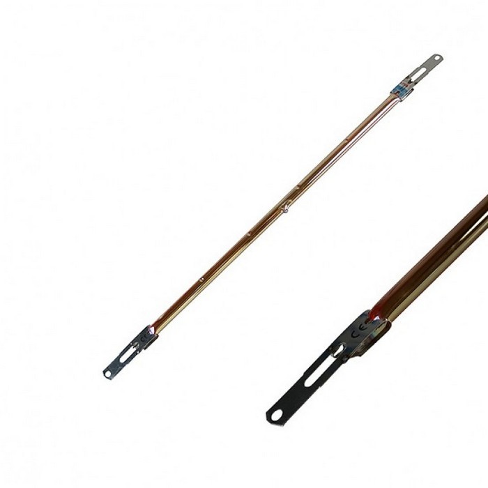 Запасной излучатель для инфракрасных сушек Trommelberg IR01 Handheld и IR1 Economy. Представляет собой газонаполненный кварцевый баллон, заключенный в оболочку из рубинового стекла, выделяющего нужный спектр инфракрасного излучения. Длина 400 мм (расстояние между концов металлических выводов), мощность 1000 Вт.