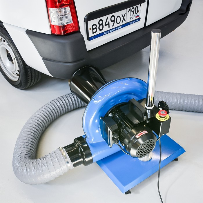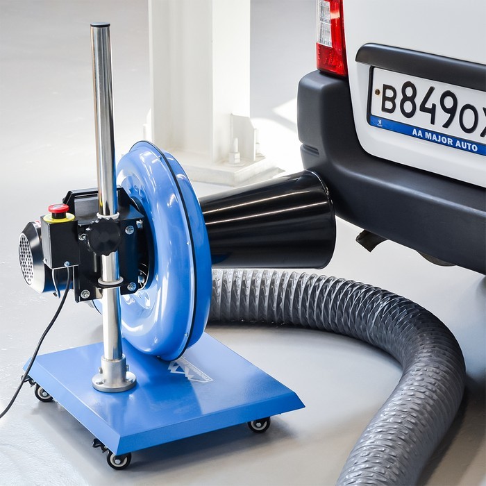 Мобильный электрический вентилятор удаления выхлопных газов из легкового и грузового транспорта.