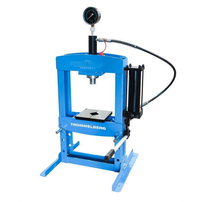 Настольный гидравлический пресс Trommelberg на 10 тонн с ручным приводом для снятия и установки зубчатых колес, универсальных соединений, шкивов, ступичных подшипников, поршневых пальцев, сгибания, распрямления и соединения деталей.