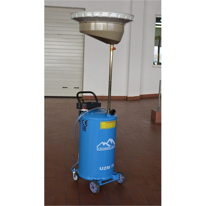 Мобильная установка для сбора отработанного масла Trommelberg UZM70 путем слива самотёком в подъёмную ванну.