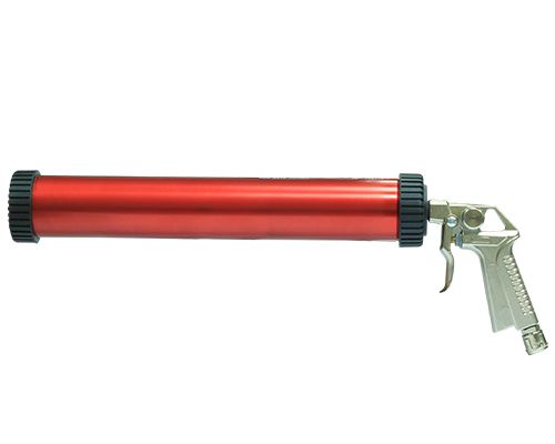 Пневматический пистолет с телескопическим поршнем и регулятором давления. Для нанесения однокомпонентных и двухкомпонентных нераспыляемых герметиков и клеев, фасованных в картриджи объёмом 310 мл и в тубах, объёмом до 400 мл.