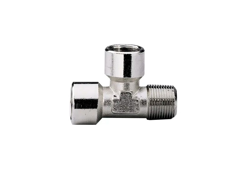 Соединитель - тройник Т (F/F/M) с двумя внутренними и одной наружной резьбой: F 3/8" - F 3/8'' - M 3/8''.
