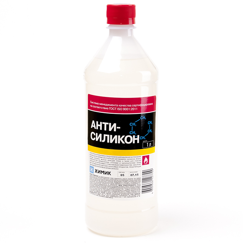 Очиститель "Антисиликон" предназначен для очистки загрязнений, возникших во время эксплуатации автомобиля: силикона, воска, битума, бензина, мелких фракций грязи, а также очистки поверхностей, обработанных грунтами и наполнителями перед окраской. Очиститель "Антисиликон" представляет собой смесь органических растворителей. Выпускается по ТУ 2384-152-00205357-2013.