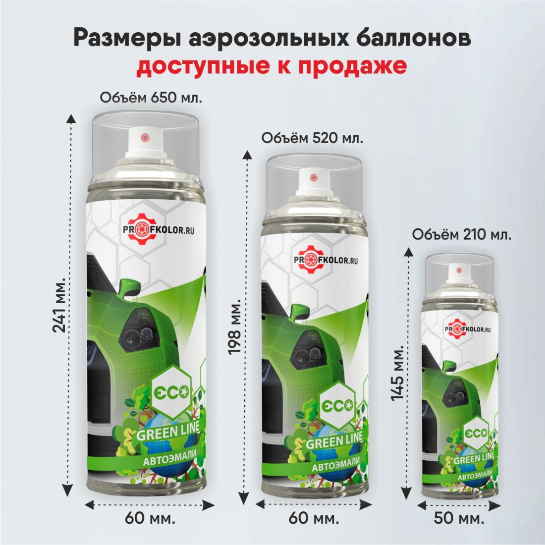 1К Эмаль Green Line в аэрозольном баллоне объёмом 210 мл./ 520 мл./ 650 мл.