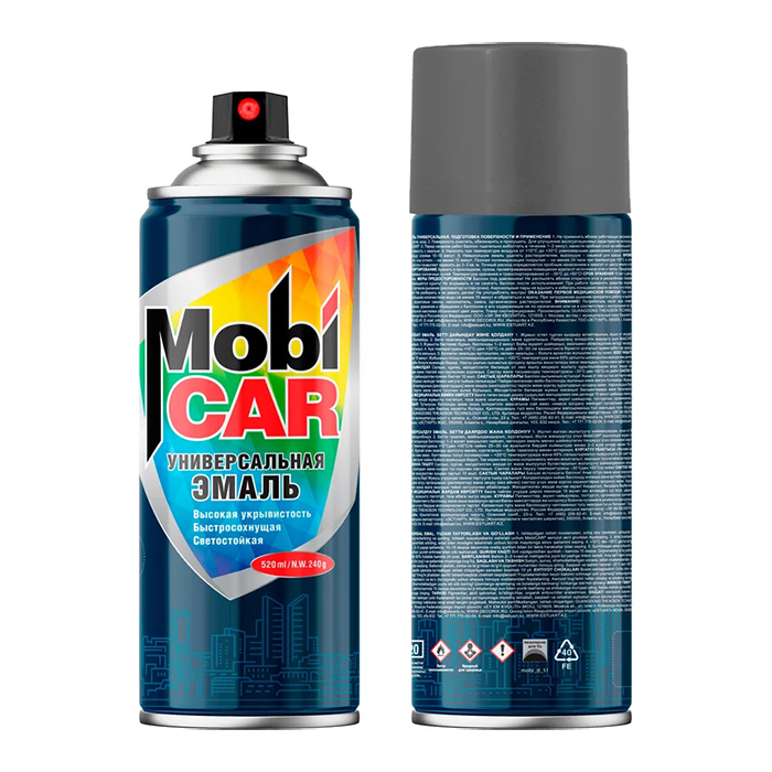 MobiCAR Аэрозольная эмаль универсальная, цвет графитовый серый, объем баллона 520 мл. Высококачественная акриловая эмаль MobiCAR® используется в декоративно-оформительских работах, строительстве и ремонте.
