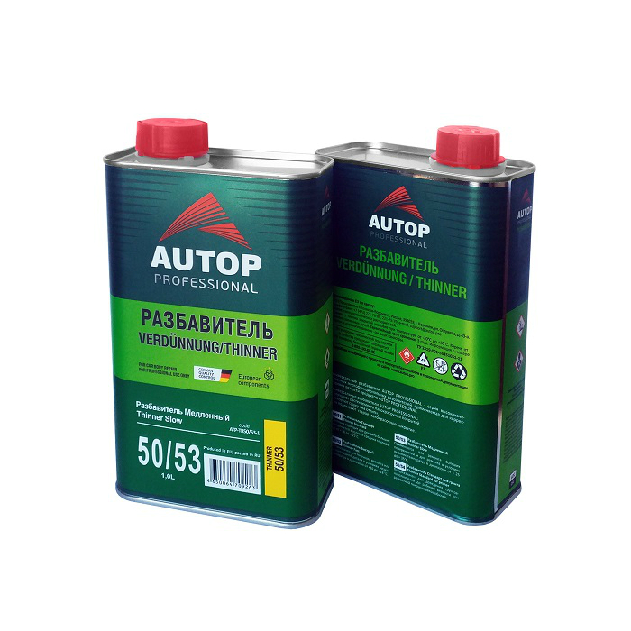 Autop Tinner Slow 50/53 Разбавитель медленный, акриловый, объем 5 литров, применяется для ремонта больших поверхностей и для ремонта в условиях высоких температур в диапазоне 25-35 градусов.