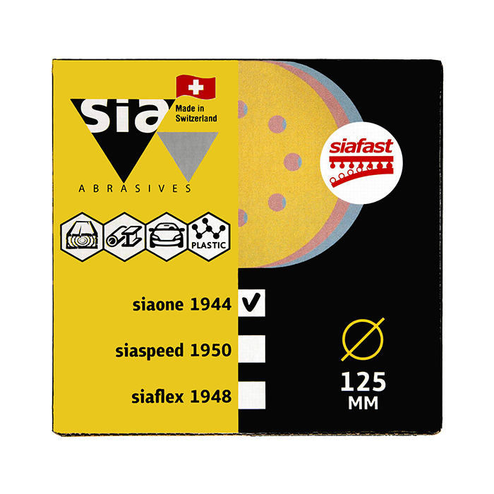 Sia Abrasives siaone 1944 Шлифовальный круг на липучке 125мм., 8 отверстий, P180, в упаковке 50шт.