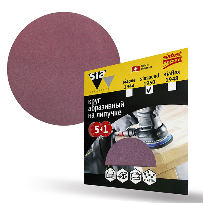 Sia Abrasives siaspeed 1950 Шлифовальный круг на липучке 150мм., без отверстий, P120, в упаковке 6шт.