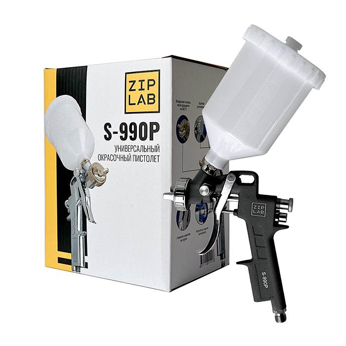 ZIP LAB Окрасочный пистолет S990P с верхним пластиковым бачком, диаметр сопла 1,3 мм.